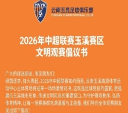 2026年中超聯(lián)賽玉溪賽區(qū)文明觀賽倡議書