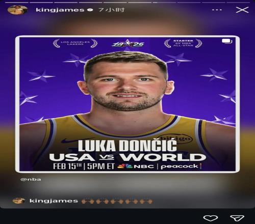 在全明星首發陣容公布后,詹姆斯在社交媒體轉發祝賀隊友東契奇入選。