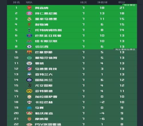 歐冠最新積分榜!阿森納拜仁提前出線,4隊(duì)已出局,第613名同分