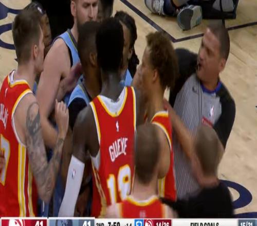 揪衣服了+跨欄都來了!莫蘭特起飛對抗蓋耶落地后沖突一人領(lǐng)一T