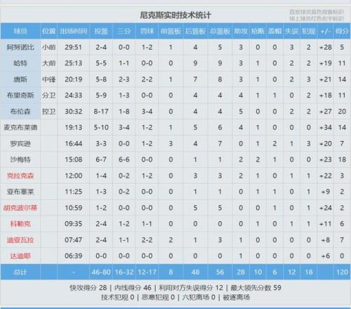 北京時間1月22日,NBA常規(guī)賽:尼克斯主場120-66狂勝籃網54分。第四節(jié)打了一半,籃網全隊0分。最終籃網第四節(jié)得到10分,尼克斯第四節(jié)32分。比賽還剩1分多鐘時,尼克斯120-61一度領先到59分,可惜沒能守住這個分差。