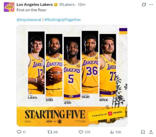 這場比賽湖人的先發陣容不變,艾頓雖然眼部受傷還是帶傷鏖戰。