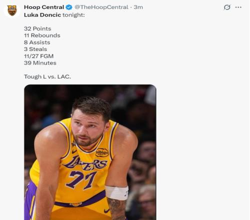 北京時間1月23日,湖人以104-112無緣逆轉快船結束連勝。此役湖人一度落后快船26分,可憑借勒布朗單獨帶隊的努力一度縮小到3分,可末節決勝時刻東契奇防守拉胯+拒投空位三分導致湖人逆轉未果,東契奇空砍32+11+8依舊要背鍋。