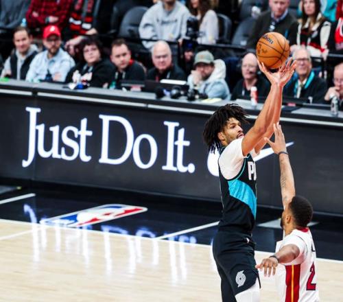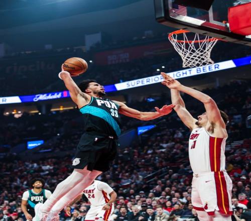最后一節(jié)開始后雙方交替得分,開拓者隊(duì)繼續(xù)保持兩位數(shù)優(yōu)勢(shì),卡馬拉兩罰一中,夏普連進(jìn)兩球,第四節(jié)還有4分鐘時(shí)他們以120-105領(lǐng)先。熱火隊(duì)暫停后鮑威爾三分不中,夏普保持手感又進(jìn)三分,開拓者隊(duì)領(lǐng)先18分。阿德巴約突破扣籃,勒夫上籃還擊,維金斯打3分成功,熱火隊(duì)以110-125落后。最后時(shí)刻熱火隊(duì)無力回天,他們以110-127落敗。