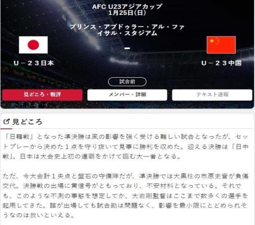 在上屆U23亞洲杯中,中國隊曾與日本隊交手,那場比賽日本隊在開場17分鐘就被罰下一人,令人遺憾的是,整場多打一人的中國隊最終以0-1輸掉了比賽,兩年后,兩隊再次在U23亞洲杯中相遇,不同的是,這次是在決賽舞臺上,這種歷史背景讓本次決賽增添了更多故事性,對中國隊而言,這不僅是爭奪冠軍的機會,也是彌補上次遺憾的良機,對日本隊來說,他們正為賽事歷史上首次衛冕而戰
