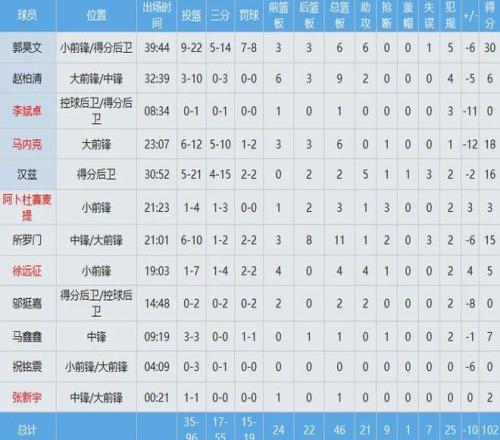 同曦隊那邊,只有郭昊文一名本土球員得分上雙,出戰約40分鐘,投籃22中9(三分14中5),罰球8中7空砍30分6板6助全面數據,林葳離隊征戰NCAA之后他成為了球隊新門面。