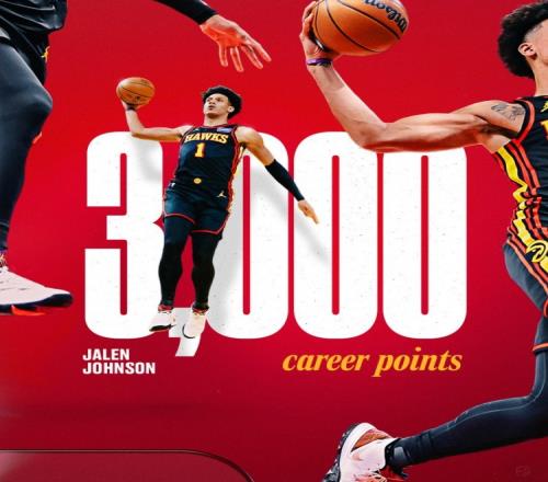 杰倫·約翰遜常規賽生涯總得分突破3000大關。