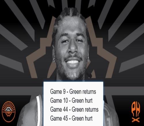 體育播報01月24日宣 太陽與老鷹的比賽正在進行,第二節,杰倫·格林突然走回了更衣室。