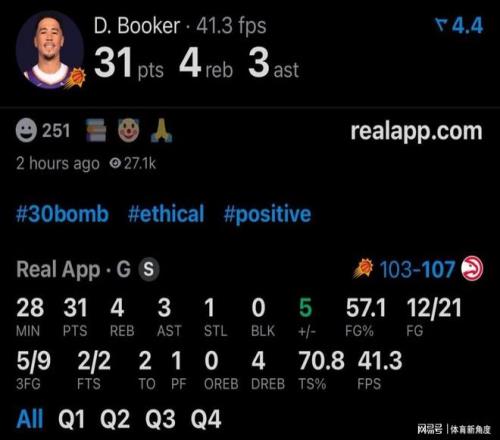 而在今天這場比賽退賽之前,布克狀態(tài)神勇,21次出手命中12次,三分球9投5中,砍下了31分、4個籃板和3次助攻。