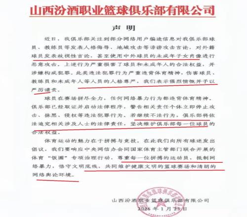 面對(duì)網(wǎng)絡(luò)的不良言論,山西隊(duì)也是忍無可忍!在深夜11點(diǎn),正式發(fā)布了一份嚴(yán)正聲明。