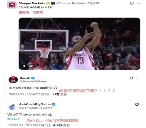 就在消息下面,有美國網友給出了一個非常犀利的表態:“哈登要再跑一次了嗎?”、“為什么會這樣?快船現在不是在贏球嗎?”、“哈登回家吧。”