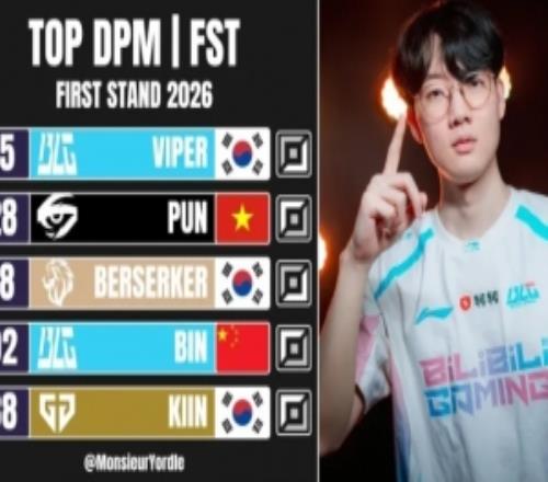 外媒統計26先鋒賽分均傷害排行:Viper排名第一,Bin第四