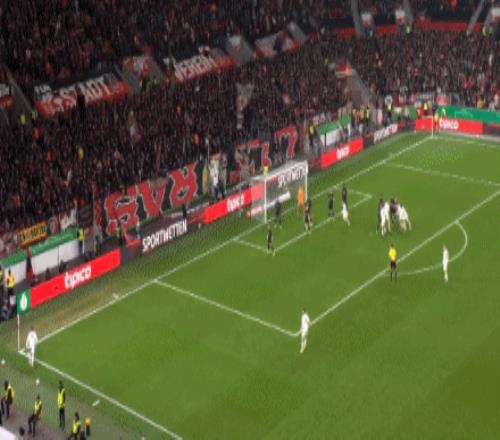 第31分鐘,泰里耶凌空抽射,皮球直掛死角,勒沃庫森1-0圣保利