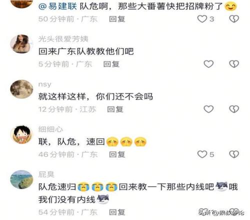 球迷對于阿聯(lián)這個(gè)教學(xué)的動(dòng)態(tài),評論方面也幾乎出現(xiàn)一邊倒,希望阿聯(lián)回去廣東男籃,好好給這一群“大番薯”上一課,尤其是一部分有潛力的年輕球員,需要他去講解內(nèi)線腳步,卡位等細(xì)節(jié)。