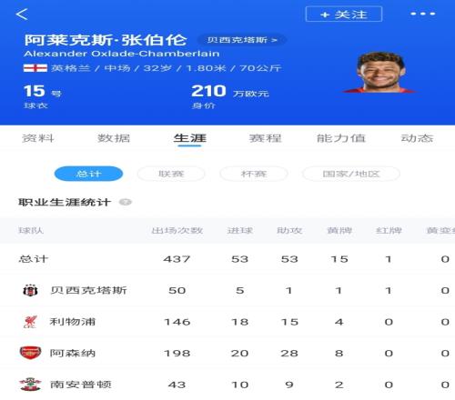 32歲的張伯倫生涯曾效力南安普頓、阿森納、利物浦和貝西克塔斯,去年夏窗張伯倫與貝西克塔斯解約,近日他一直在阿森納訓(xùn)練基地保持狀態(tài),目前球員德轉(zhuǎn)身價210萬歐。