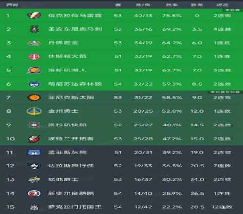 西部最新積分榜