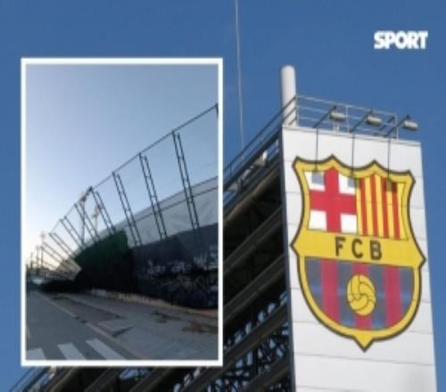 每體:由于遭遇暴風雨襲擊,巴薩體育城一面圍墻出現倒塌