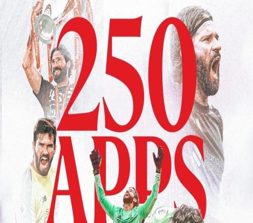 里程碑,阿利松迎來英超生涯第250次出場