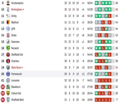 而本場輸球后,萊斯特城目前和降級區的布萊克本同積32分。萊斯特城還比布萊克本多踢1場,保級形勢十分嚴峻。