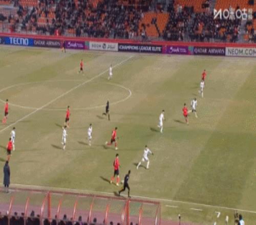 第21分鐘,馮勁接到隊友直塞,禁區內扣過防守球員后一腳低射,這球擊中了邊網。↓