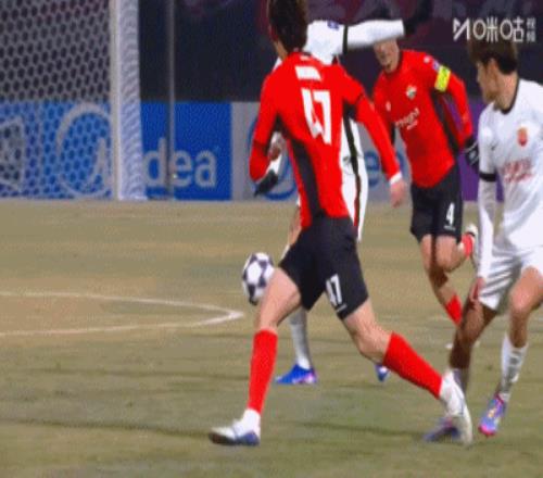 第13分鐘,江原FC右路策動攻勢,牟在現送出直塞,樸相赫前插橫傳禁區,第一點被解圍,點球點附近徐珉優爆射打飛了?!?/p>