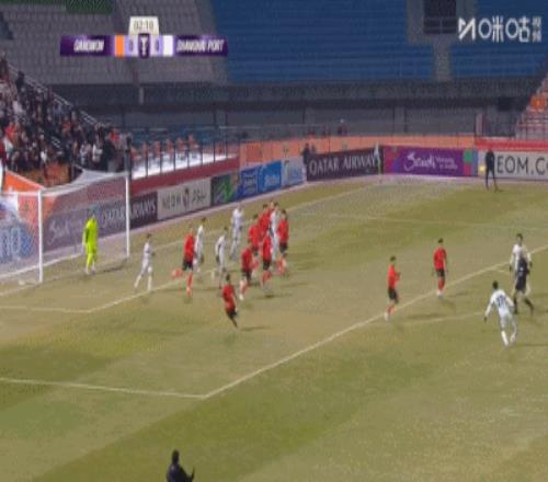 第6分鐘,上海海港反擊機會,劉祝潤接到隊友頭球擺渡,弧頂處起腳攻門打偏了,不過這球他也越位在先。↓