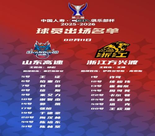 體育播報2月11日宣 今晚19:30,CBA俱樂部杯季軍賽,山東對陣廣廈,賽前大名單公布。