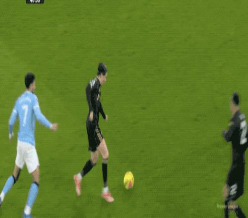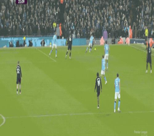 第22分鐘,曼城前場高位逼搶造成富勒姆的出球被搶斷,奧萊利的遠射還是操之過急,放了高射炮。