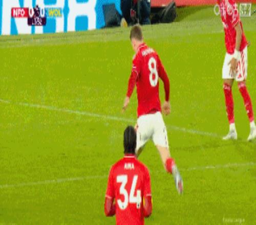 第51分鐘,諾丁漢右路起球,恩多耶頭球頂偏