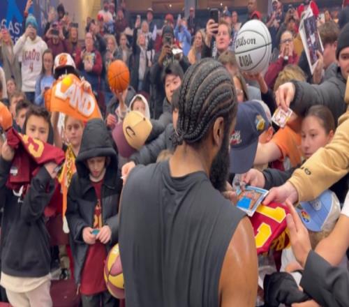 人氣超高!哈登主場首秀前為眾多克利夫蘭的小球迷耐心簽名