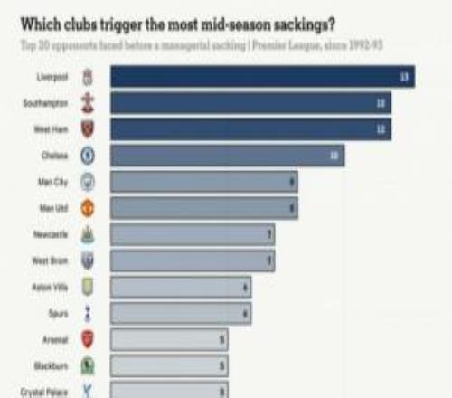 【主帥殺手】TA:英超歷史上共有13位主帥在執教球隊對陣利物浦后被解雇。第二、第三名分別為南安普頓和西漢姆...