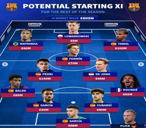前鋒:拉菲尼亞、萊萬、亞馬爾
