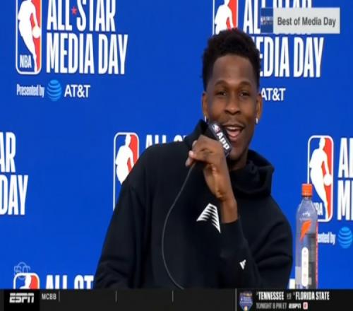 體育播報2月16日宣 NBA全明星媒體日,森林狼球星愛德華茲接受了媒體采訪。