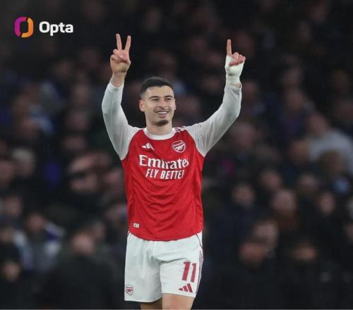 Opta統(tǒng)計,馬丁內利本場破門后成為了94-95賽季的賴特之后,首位單賽季在國內杯賽以及歐戰(zhàn)比賽中進球10+的槍手。