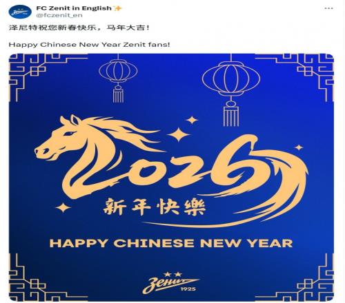 體育播報2月16日宣 春節之際,俄超俱樂部澤尼特為球迷送上祝福。