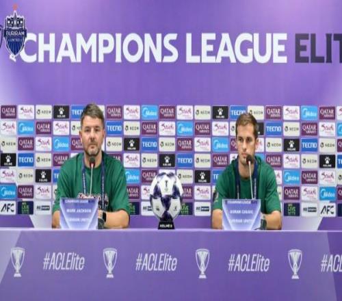 北京時間2月16日,在亞冠精英聯賽階段收官戰,武里南聯主場對陣上海申花的賽前,武里南聯主帥馬克-杰克遜和隊員喬希奇出席了新聞發布會。