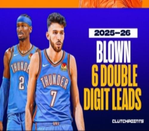 上賽季雷霆共5次領先兩位數最終被逆轉本賽季48場已出現6次