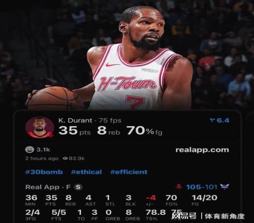 讓我們把時鐘撥回去年夏天:當36歲的杜蘭特與火箭簽下2年9000萬合同時,所有人都以為休斯頓將迎來新的王朝。但現實卻像他小腿皮膚的蛻變一樣充滿反差。,這位歷史級得分手場均"僅"貢獻26分5.4籃板4.4助攻,數據看似穩定,卻難掩統治力下滑的真相。對比他在總決賽G3的43分13籃板,或是籃網時期對陣活塞的51分神跡,如今的杜蘭特更像臺精密運轉卻缺乏爆發力的機器。
