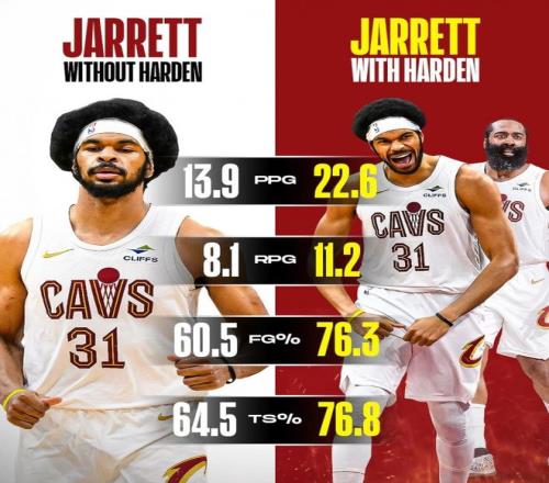 今年賽季中期的交易,哈登和加蘭互換東家,哈登加盟騎士,騎士補(bǔ)齊了最后一塊沖冠短板:進(jìn)攻發(fā)動(dòng)機(jī)。哈登作為歷史最強(qiáng)(或許沒有之一)雙能衛(wèi),雖然已經(jīng)36歲了,但是老A8還是A8,能力太強(qiáng)了。在快船的前半個(gè)賽季,場(chǎng)均25.8分5.2籃板8.2助攻,已經(jīng)是準(zhǔn)全明星級(jí)別了,加盟騎士后,他繼續(xù)放權(quán),專心梳理進(jìn)攻,場(chǎng)均18.4分4.8籃板8.6助攻1搶斷,投籃命中率49.1%,三分命中率48.1%,罰球命中率89.3%,而且球隊(duì)5勝0負(fù),無死角的強(qiáng)啊!