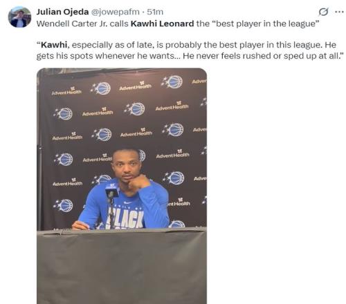 賽后小卡特在接受采訪時談到卡哇伊:他如今就是聯盟最出色的球員之一。他總能在球隊需要他時扛起球隊,他從不緊張也不慌亂。