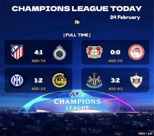 北京時間2月25日,昨夜今晨,足壇又有新的重大事件發生,歐冠淘汰賽附加賽進行,國米遭雙殺出局,紐卡、馬競和勒沃庫森晉級。