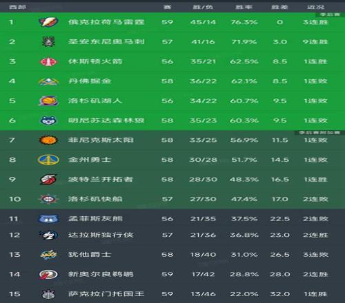 西部最新積分榜