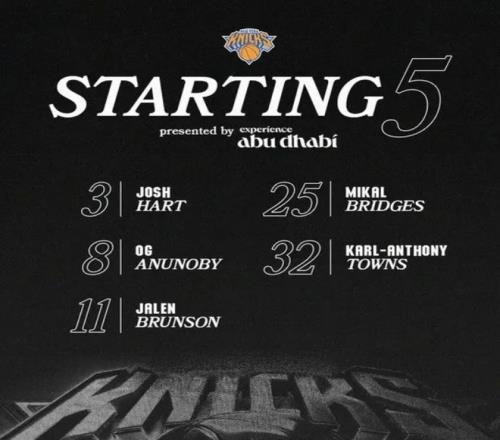 首發(fā)陣容方面,騎士隊(duì)這邊,斯特魯斯(左腳骨折)無(wú)法出戰(zhàn),教練阿特金森排出的最新首發(fā)五人組為:詹姆斯-哈登、多諾萬(wàn)-米切爾、迪恩-韋德、埃文-莫布利和賈勒特-阿倫;尼克斯隊(duì)這邊,除了麥克布萊德其余球員均可出戰(zhàn),首發(fā)陣容則為:布倫森、阿奴諾比、布里奇斯、哈特、唐斯。
