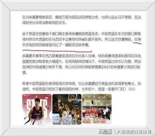 此前,中國男籃公布了世亞預第二窗口期比賽的14人名單,《體壇周報》記者邵化謙發文解讀了此次選人緣由。他表示...