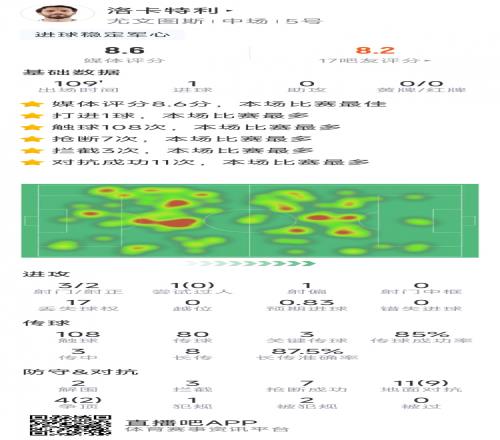 體育播報2月26日宣 在本輪歐冠淘汰賽附加賽,尤文3-2擊敗加拉塔薩雷,以下為洛卡特利本場數據:
