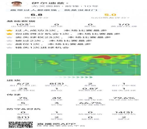 伊爾迪茲本場(chǎng)數(shù)據(jù):6射2正,1次中框,1次錯(cuò)失良機(jī),3次關(guān)鍵傳球