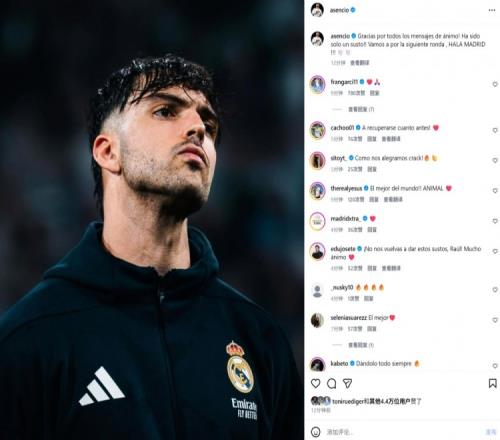 本場比賽阿森西奧與隊友卡馬文加相撞受傷離場,賽后球員也在社媒發文報平安寫道:“感謝大家的鼓勵信息!這只是虛驚一場,讓我們一起迎接下一輪比賽,皇馬加油!”