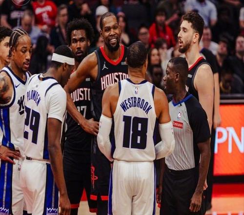 首節(jié)比賽,威少一個人17分,但國王隊(duì)的其余球員合計只有5分,全隊(duì)單節(jié)22分。火箭隊(duì)隨便在外線傳導(dǎo)幾下,就出現(xiàn)了大量的空位。而且火箭隊(duì)一開始也沒有給多少防守強(qiáng)度,一旦他們認(rèn)真起來,國王隊(duì)就直接崩盤了。眼瞅著,分差奔著30+去了。威少不甘心啊,所以一度上頭,對著申京強(qiáng)硬犯規(guī)。正巧又碰到了趕來護(hù)隊(duì)友的杜蘭特,兩人順勢互噴。威少不服氣,或者說不愿意,不愿意看著自己所在的球隊(duì)被對手戲弄。而杜蘭特,知道兩隊(duì)的實(shí)力差距,所以只是笑著看威少。比賽結(jié)果也是如此,談笑間,杜蘭特輕松得到21分,率隊(duì)擊敗國王,而內(nèi)線的申京則是26分13籃板11助攻大號三雙!