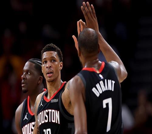 本場比賽中,火箭的先發小前鋒凱文-杜蘭特(Kevin Durant)的表現還是能夠保持在一個比較理想的水平。杜蘭特全場出場27分54秒,投籃13中8,三分線外5中2,罰球3中3,以穩定的效率得到了21分4籃板5助攻的數據,還有2次失誤和3次犯規,正負值為+7。值得一提的是,27分54秒也是刷新了杜蘭特本賽季的單場出場時間新低,在之前所有場次的比賽中,杜蘭特的出場時間都是多于28分鐘的。在出場時間不多的情況下,杜蘭特也是抓住了機會展現出了自己超強的得分能力和穩定的投射能力,他在傳球和策應方面也發揮出了一些自己的作用,他在防守端的表現也算是中規中矩。杜蘭特在本場比賽中也是承擔起了應該承擔的責任,為球隊的勝利做出了巨大的貢獻。
