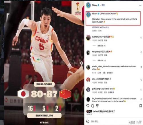 更離譜的是,FIBA世界杯的官方賬號賽后竟然寫道:“沖繩神劇本!中國男籃從日本偷走一場勝利。”(China with a sneaky win over Japan),“Sneaky”一詞隱含“鬼祟、卑鄙”的貶義,被質疑暗指中國隊勝之不武。